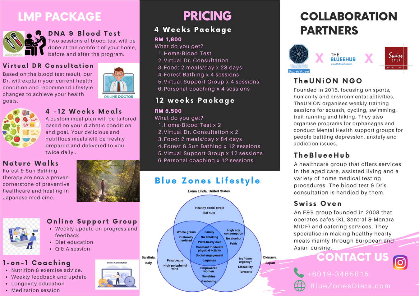 Health is wealth. BlueZones Diets (BZD) uses a holistic approach in Functional Medicine that combines Nutritional Therapy & lifestyle improvements to combat Obesity, Type-2 Diabetes & Longevity issues.